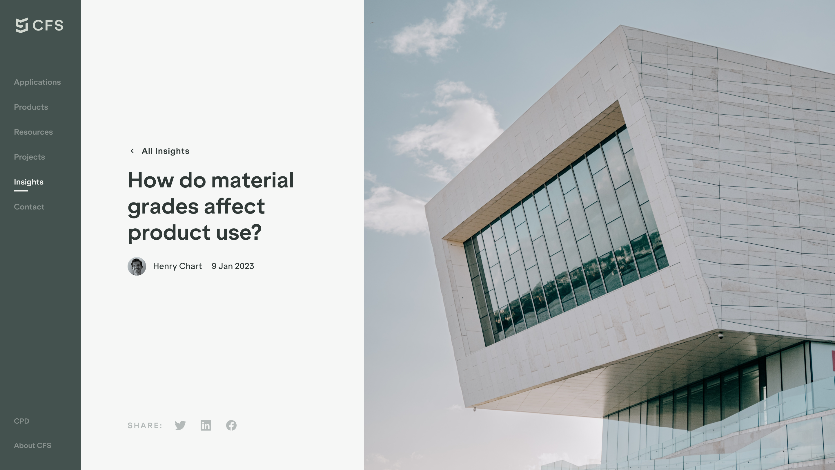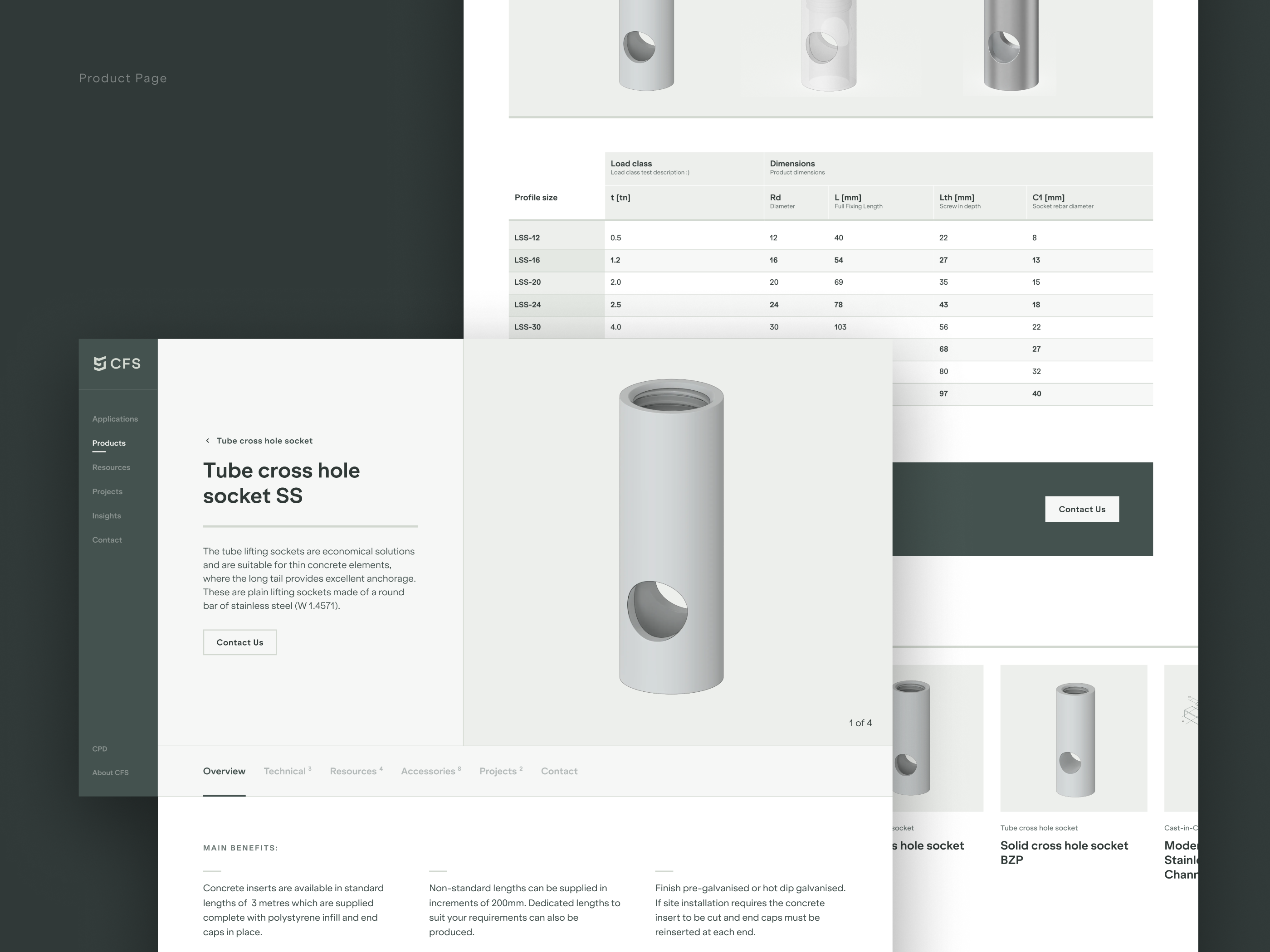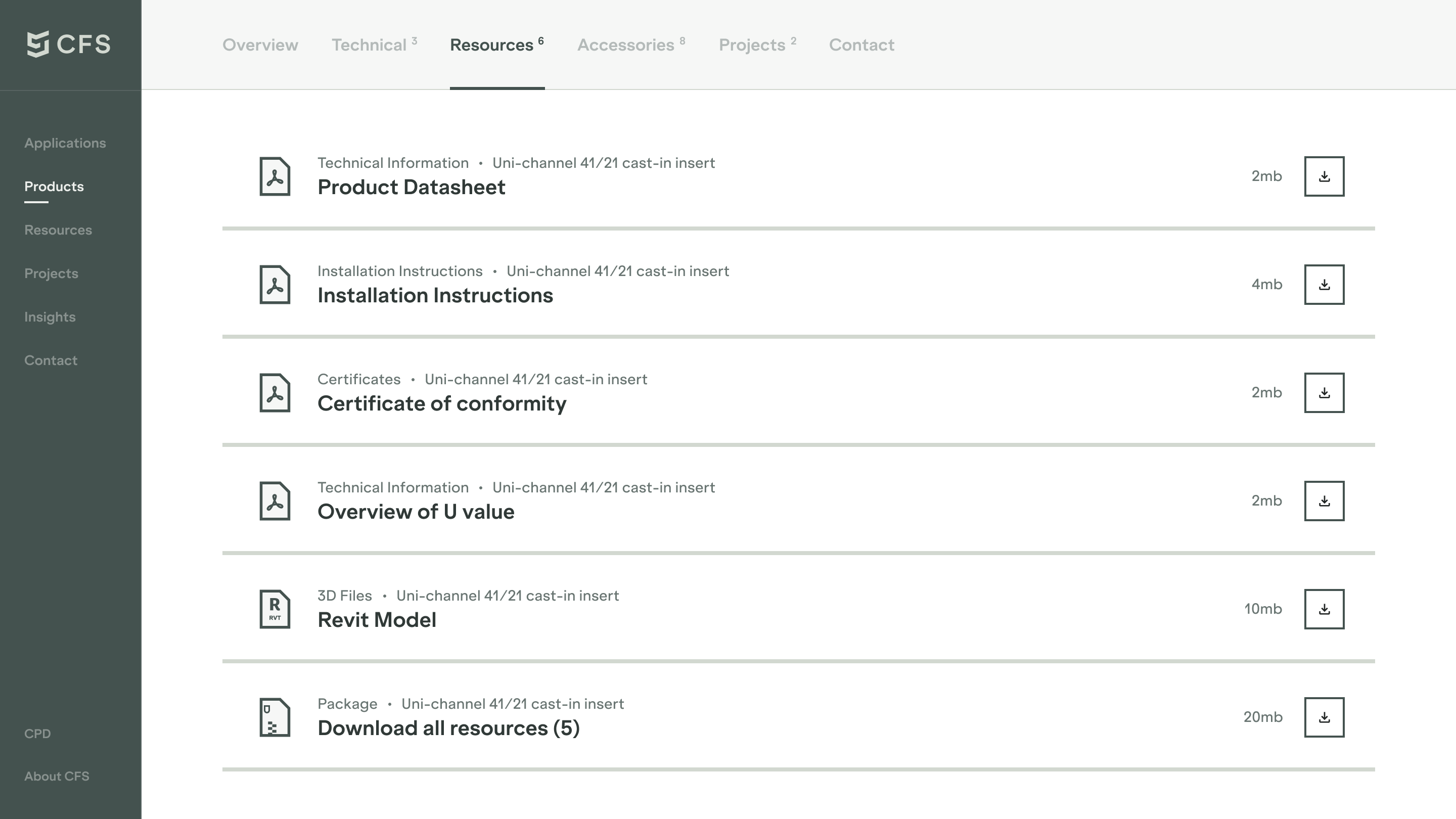 Using the design system created during the branding work, we designed a sleek modern site that utilises WebGL (including 3D in the browser). With UX / UI front of mind, we created a method within the CMS to display CFS' thousands of products with their specific features and attributes. We then used that CMS to dynamically create bespoke styled brochures for collections, products etc. for the wider team at the click of a button.