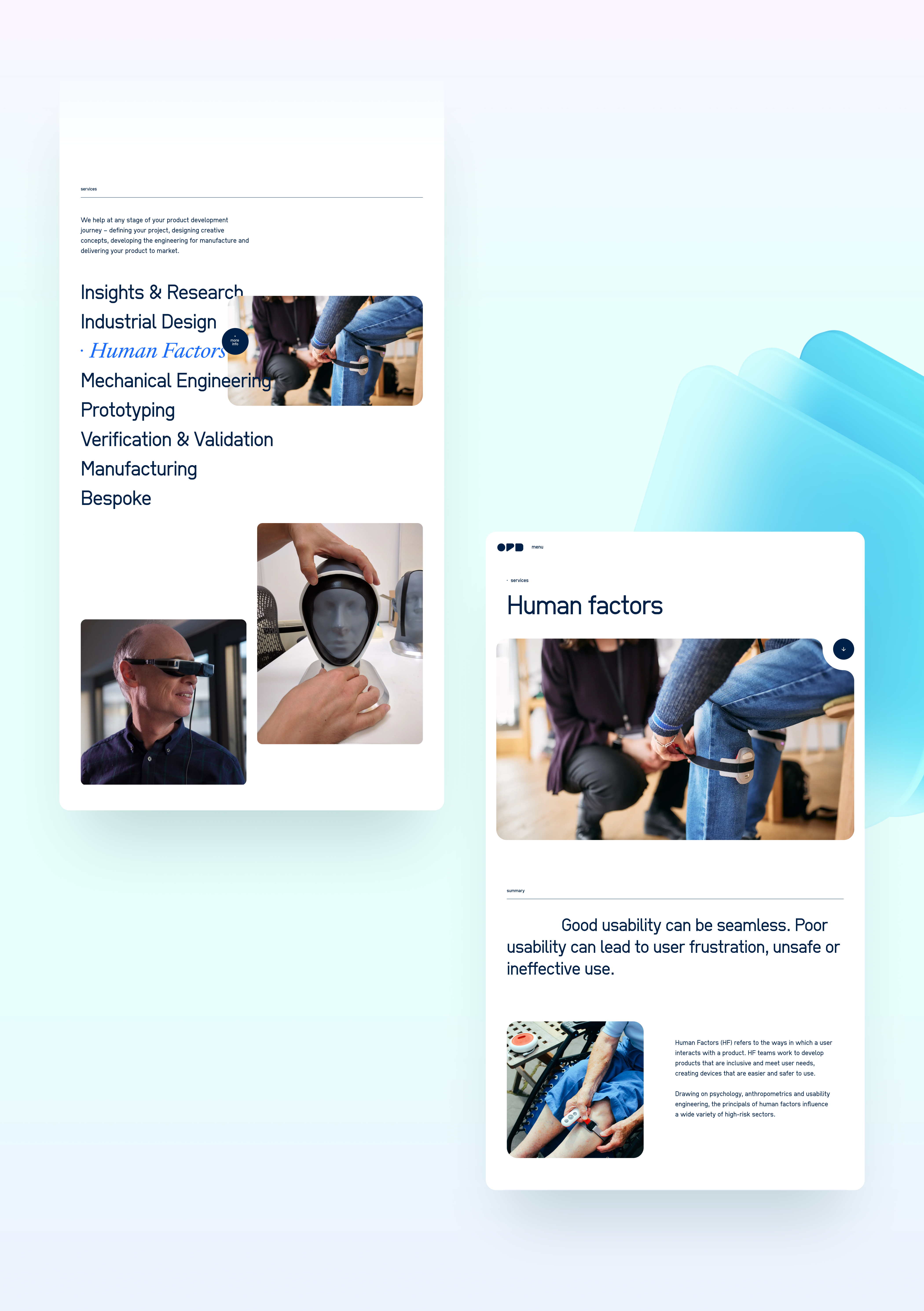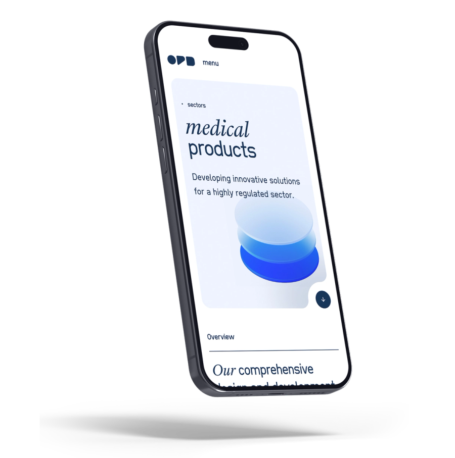 We collaborated closely with the team at OPD to develop a complementary visual identity and website that aligned with their refined mission. The design process drew inspiration from both the technical precision and creative innovation embedded in their products, resulting in a digital presence that balanced aesthetics with clarity. The new site structure emphasised their key sectors, highlighted their product expertise, and incorporated visual storytelling to convey the fusion of design and science that defines the brand.